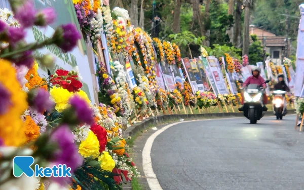 Deretana karangan bunga ucapan selamat HUT Ketik.com ke-3 memenuhi Graha Ketik. (Foto: Fiqih Arfani/Ketik)