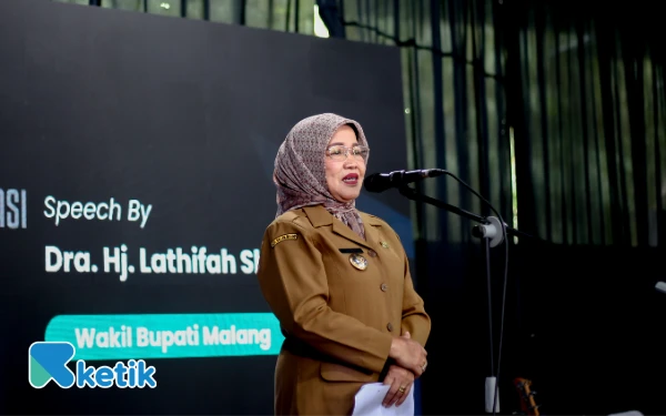 Wakil Bupati Malang Lathifah Shohib memberikan sambutan di acara puncak Anniversary ke-3 Ketik.com di Graha Ketik, Kota Malang, 9 September 2025. (Foto: Dok. Ketik)