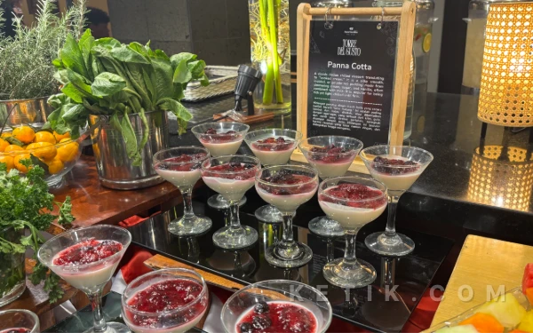 Panna cotta yang manis asam sebagai dessert khas Italia hadir pada paket Italian All You Can Eat Dinner "Torre Del Gusto" di Hotel Santika Premiere Malang. (Foto: Aliyah/Ketik.com)