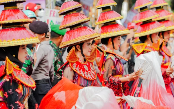 Ribuan warga Mataran dan sekitarnya antusias mengikut acara itu. Arak-arakan dimulai dari Taman Sangkareang, kemudian melintasi Jalan Pejanggik, Jalan Udayana, hingga berakhir di Teras Udayana sebagai titik pusat perayaan. (Foto: MGPA)