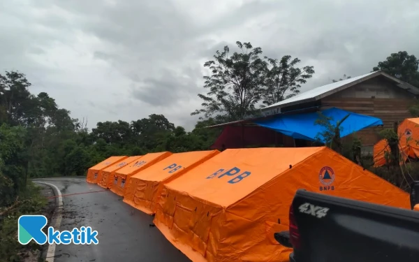 BNPB dan BPBD Nagan Raya menyiapkan tenda pengungsian di Beutong Ateuh Banggalang, Sabtu, 29 November 2025. (Foto: Basriadi-Irfan-T. Rahmat/Ketik.com)