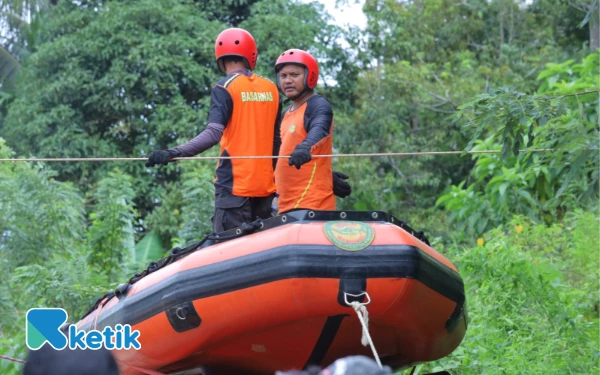 Perahu karet disiapkan petugas untuk membantu evakuasi korban banjir Beutong Ateuh Banggalang, Sabtu, 29 November 2025. (Foto: Basriadi-Irfan-T. Rahmat/Ketik.com)