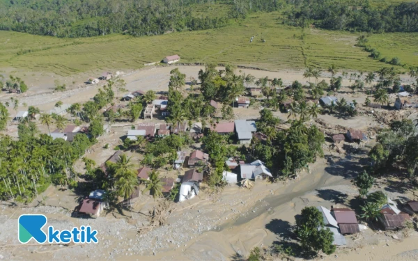 Penampakan wilayah Beutong Ateuh Banggalang dari udara usai tersapu banjir, Sabtu, 29 November 2025. (Foto: Basriadi-Irfan-T. Rahmat/Ketik.com)