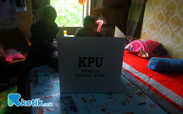 Kelompok Penyelenggara Pemungutan Suara (KPPS) langsung mendatangi rumah warga yang sakit ibu Ninggu untuk melakukan Pemilihan Suara Lanjutan (PSL) di Tempat Pemilihan Suara (TPS) 009 Kelurahan 36 Ilir, Kecamatan Gandus, Palembang, Sabtu (24/2/2024). Kota Palembang melakukan Pemilihan Suara Lanjutan (PSL) 20 TPS yang tersebar di 3 Kecamatan antara lain, Kecamatan Kertapati, Kecamatan Kalidoni dan Kecamatan Gandus. Wahyu Rahmanto/Ketik.co.id