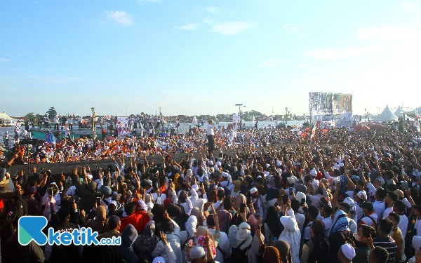Antusias warga Palembang saat menghadiri kampanye akbar Presiden No Urut 1 Anis Rasyid Baswedan di Pelataran Benteng Kuto Besak Palembang, Kamis (25/1/2024). Wahyu Rahmanto/Ketik.co.id