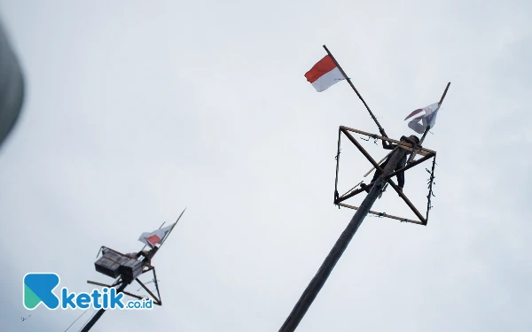 [Berita Foto] Suasana Lomba Panjat Pinang 79+ Batang di Palembang