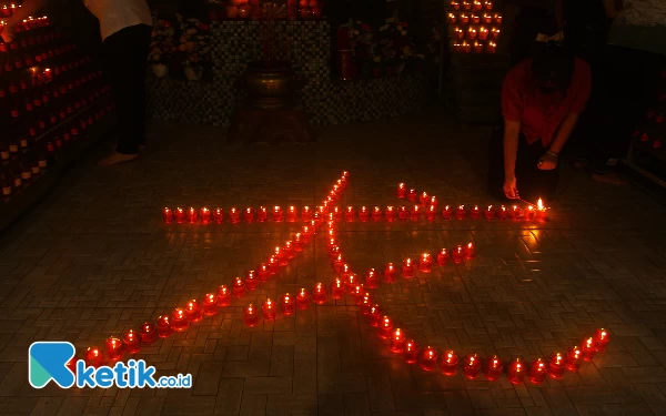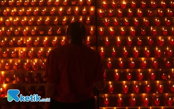 Ratusan lilin pelita di nyalakan oleh warga keturunan Tionghua dalam perayaan tahun baru Imlek 2575 yang jatuh pada tanggal 10 Febuari 2024 di Wihara Dharmakirti Palembang, Sabtu (10/2/2024). Penyalaan lilin tersebut sebagai bentuk kebersihan serta penerangan hati agar menerangi kehidupan selama setahun ini. Wahyu Rahmanto/Ketik.co.id