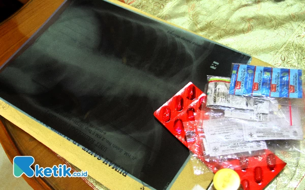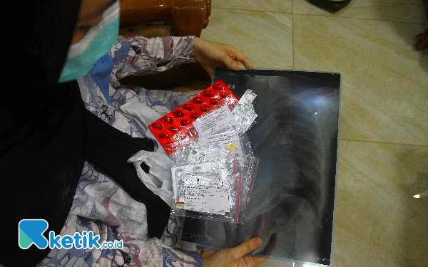 Arlin Nursyarifah melihatkan hasil X-ray dari rumah sakit yang menyatakan dirinya terkena ISPA akibat kabut asap, Rabu (18/10/2023). (Foto: Wahyu R/Ketik.co.id)