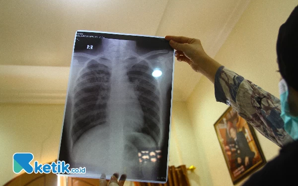 Arlin Nursyarifah melihat hasil X-ray dari Rumah Sakit yang menyatakan terkena Infeksi Saluran Pernapasan Akut (ISPA), Rabu (18/10/2023). (Foto: Wahyu R/Ketik.co.id)