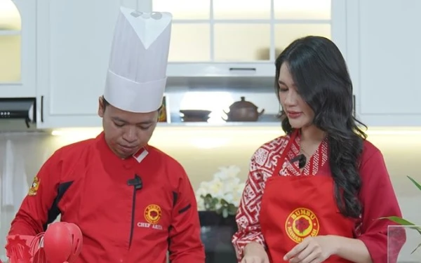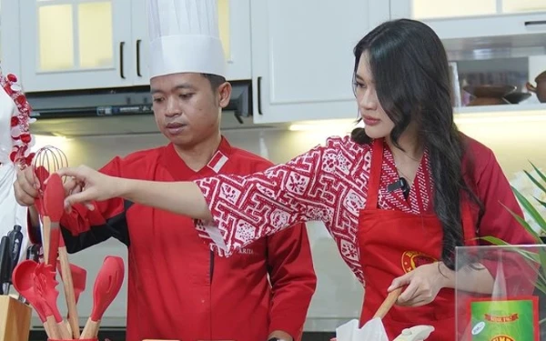 Puteri Indonesia Sumsel 2023, Jelita Gabriella menemani Chef Arya memasak rendang (Foto: Instagram @jelitagabriellaa)