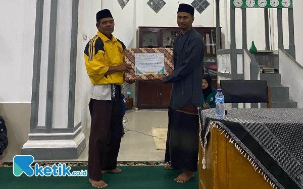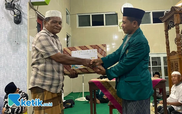Penyerahan bingkisan Cendra Mata usai kegiatan Safari Ramadan di sebuah Masjid yang disambangi tim Safari Ramadan SMAN 1 Lembah Melintang.(Wawan/ketik.co.id)