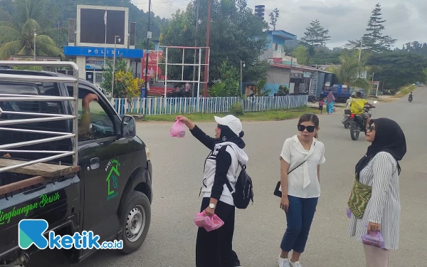 Nampak beberapa Dewan Guru SMKN 2 Raja Ampat membagikan Takjil kepada penguna jalan di area Pos Lantas Kota Waisai. Foto: Abi/Ketik.co.id)