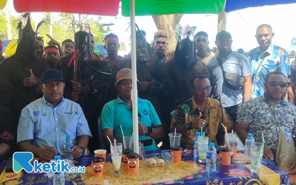 Antuasias penonton saat group Suling Tambur dari Distrik Misool Timur Kab. Raja Ampat memasuki garis finis di area Pantai WTC, Raja Ampat, Kamis (19/10/2023) . (Foto: Abhie/Ketik.co.id)
