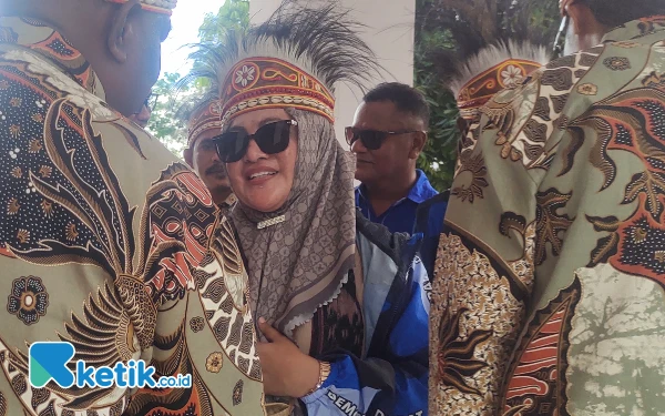 Kedatangan Pasangan Ria Umlati -Benoni Saleo di Kantor KPU Raja Ampat tersebut disambut Ketua dan Komisioner KPU serta Bawaslu Kabupaten Raja Ampat di pintu utama Kantor KPU. (Foto: Abi/Ketik.co.id)