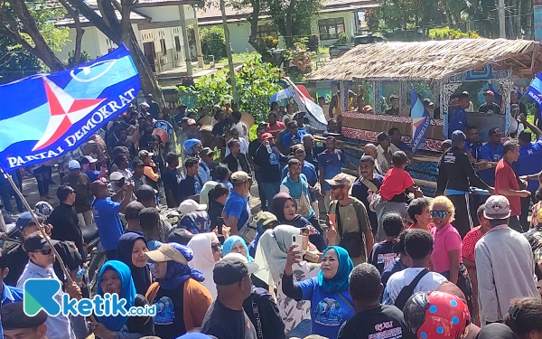 Ribuan pendukung dan simpatisan Bakal Calon Kepala Daerah dan Wakil Kepala Daerah pasangan Siti Nurlia Umlati- Benoni Saleo (RUBI) membludak memadati area Kantor KPU Raja Ampat saat pendaftaran pada Selasa (27/8). (Foto: Abi/ Ketik.co.id)