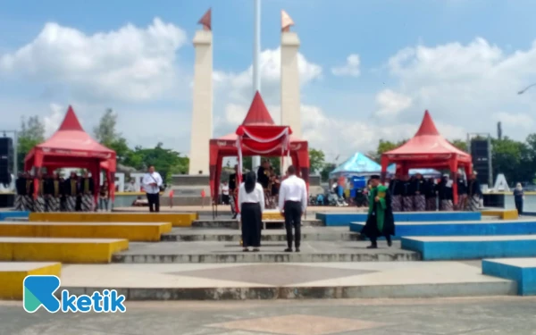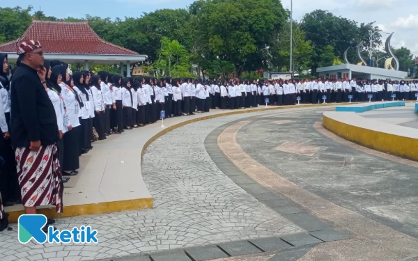 Upacara penyerahan petikan keputusan Bupati Sampang tentang pengangkatan pegawai PPPK Paruh Waktu di Alun-Alun Trunojoyo Sampang, Selasa, 23 Desember 2025 (Foto: Mat Jusi/Ketik.com)
