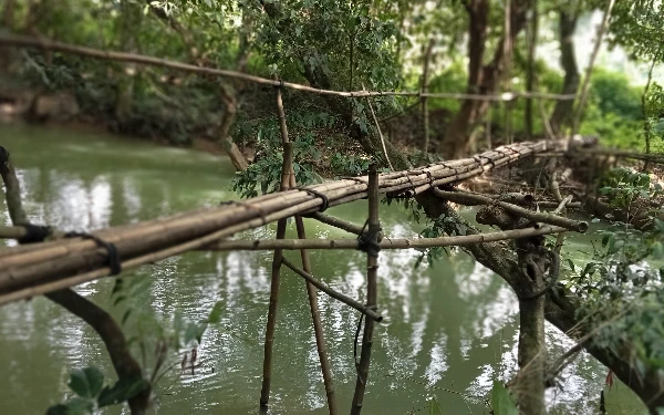 Jembatan bambu swadaya masyarakat yang perlu bantuan pemerintah ( foto : Ach. Suni )