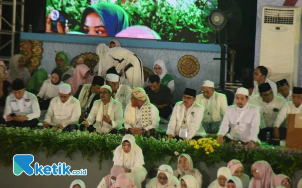 Tampak hadir pula para Kiai dan Ulama besar dari berbagai wilayah Jawa Timur dalam acara Doa bersama dan Istighotsah akbar untuk Kemenangan Khofifah-Emil di Pilgub Jatim 2024 di Jatim Expo Jl A Yani Surabaya, Sabtu (23/11/2024) ini. (Foto: Khaesar/Ketik.co.id)