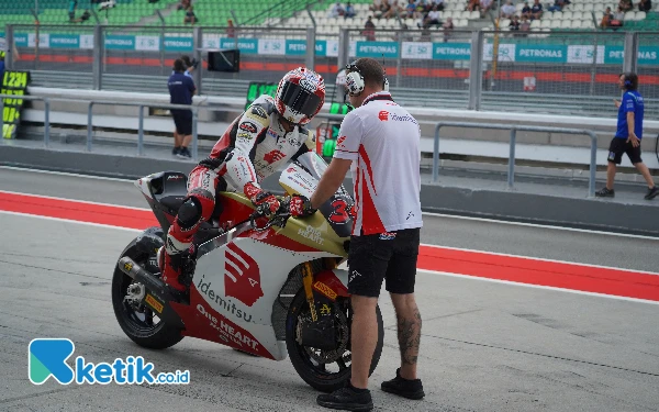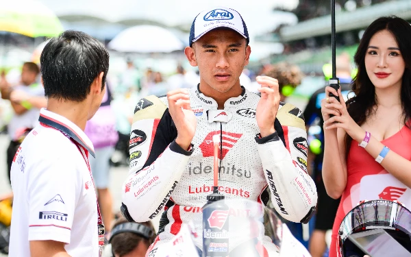 Rider Moto2 Indonesia Mario Suryo Aji sebelum tampil pada GP Malaysia di sirkuit Sepang, 3 November 2024. (Foto: Honda Team Asia)