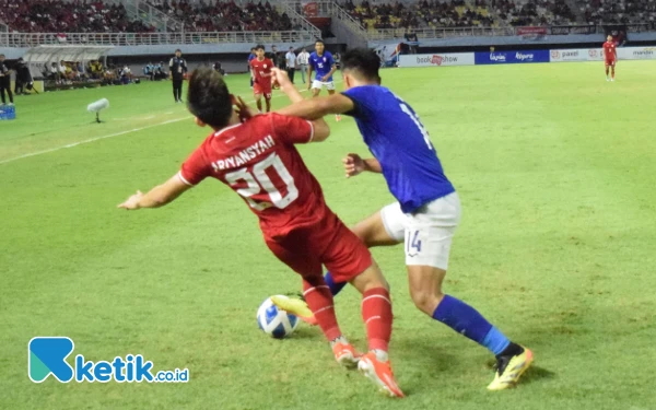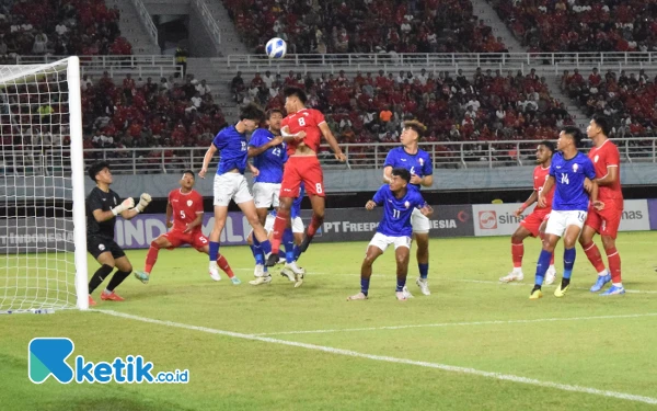 Duel udara kerap terjadi di pertandingan Indonesia meawan Kamboja, Sabtu (20/7/2024). (Foto: Khaesar/Ketik.co.id)