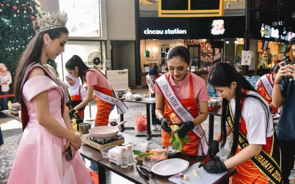 Dalam acara Pra karantina Puteri Indonesia Jawa Timur 2025 salah satunya digelar sesi cooking show (Foto: @puteriindonesiajatim)