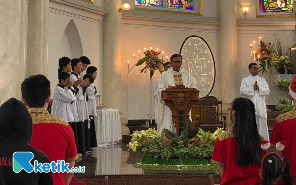 Peribadahan Natal dipimpin oleh Romo Gigih CM. (Foto: Shinta Miranda/Ketik.co.id)