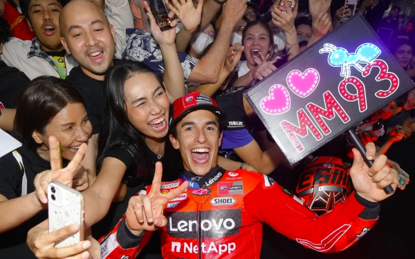 Rider pabrikan Ducati Marc Marquez menjadi salah satu pusat perhatian. Dia sudah dinanti-nantikan fans beratnya. Ini tahun pertama Marquez membela pabrikan Ducati setelah musim lalu masih bersama tim Gresini. "Thailand salah satu negara yang membuat MotoGP menjadi lebih baik dan meriah. Aku tak sabar membalap di sini," ucap Marquez dilansir Crash. (Foto: motogp.com)