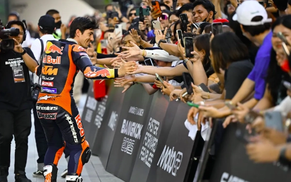 Launching MotoGP 2025 di kawasan One Bangkok, Thailand, berlangsung meriah Senin, 9 Februari 2025. Ribuan fans memadati area tersebut. Selain mneyajikan panggung utama, rider-rider top MotoGP juga mendekat ke fans dalam acara parade keliling kota. (Foto: motogp.com)