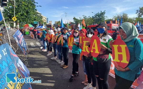 Meriahnya May Day di depan Kantor Gubernur Jatim