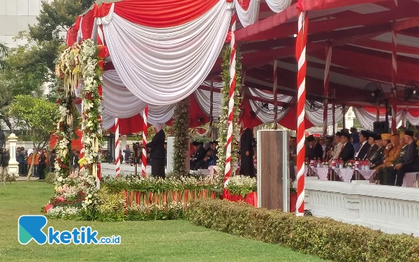 Peserta upacara mengikuti upacara hari pahlawan dengan khidmat.(Foto: Husni Habib/Ketik.co.id)