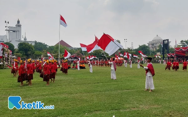 Tari kolosal turut memeriahkan pelaksanaan upacara hari pahlawan. (Foto: Husni Habib/Ketik.co.id)