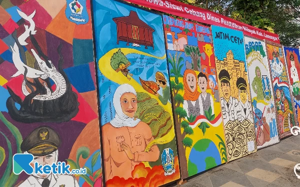 Deretan lukisan karya pelajar Jawa Timur dipajang di sepanjang jalan Gubernur Suryo. Kamis (12/10/2023).(Foto: Husni Habib/Ketik.co.id)