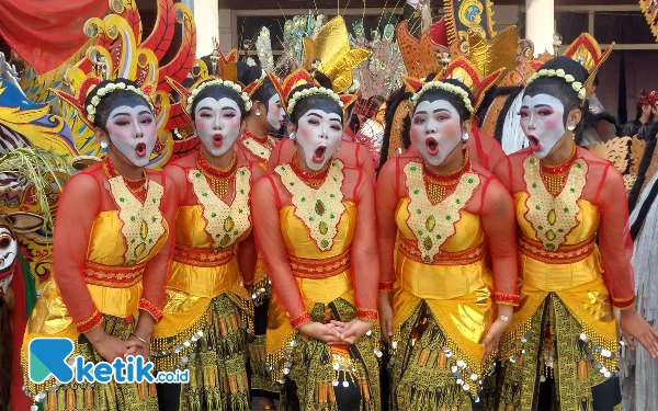 Penampilan para penari yang akan mengisi pawai budaya di Peringatan HUT ke 78 Provinsi Jawa Timur. Kamis (12/10/2023).(Foto: Husni Habib/Ketik.co.id)