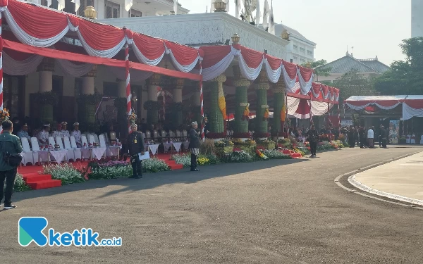 Suasana Gedung Negara Grahadi Jelang Upacara HUT Ke-78 Provinsi Jawa Timur