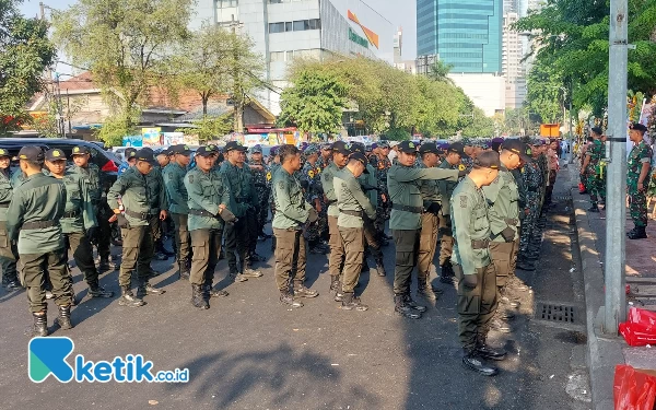 Pasukan sedang mempersiapkan diri jelang Upacara Peringatan HUT ke-78 Provinsi Jawa Timur. Kamis (12/10/2023).(Foto: Husni Habib/Ketik.co.id)