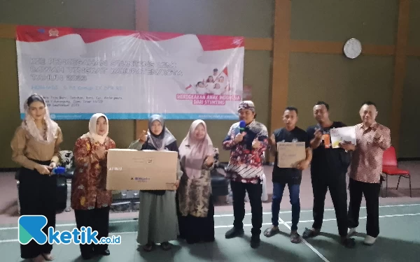 Penyerahan doorprize bagi peserta sosialisasi penanggulangan stunting oleh anggota Komisi IX DPR RI dan tim BKKBN (Foto: Sugeng Hariyadi/Ketik.co.id)