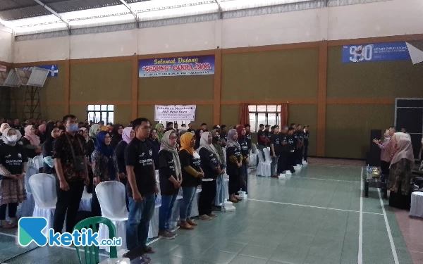 Peserta menyanyikan lagu kebangsaan Indonesia Raya sebelum dimulainya sosialisasi penanggulangan stunting (Foto: Sugeng Hariyadi/Ketik.co.id)